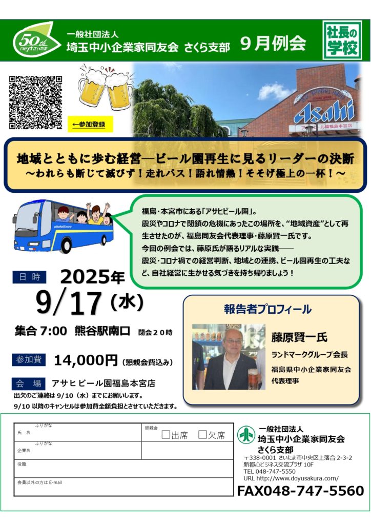埼玉中小企業家同友会にご関心のある方は、事務局までご連絡ください。